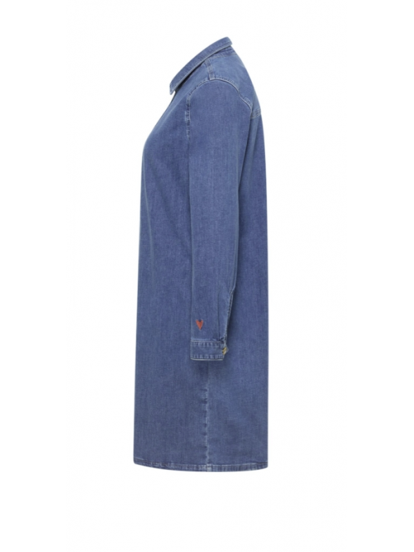 Tyto džínové šaty z bavlny s nádechem pružnosti spojují nadčasový styl s příjemným pohodlím. Elastický materiál zajišťuje optimální volnost pohybu a pohodlné usazení. Klasické detaily jako límec košile, knoflíky a dlouhé rukávy podtrhují autentický vzhled, zatímco nenápadná výšivka srdíčkem na rukávu dodává zvláštní akcent. Od neformálních po moderní – šaty jsou dokonalým univerzálním doplňkem