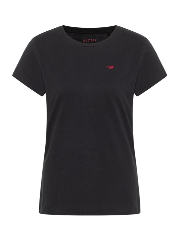 Dámské triko s krátkým rukávem, černá barva, vyšitý koník v tmavě růžové