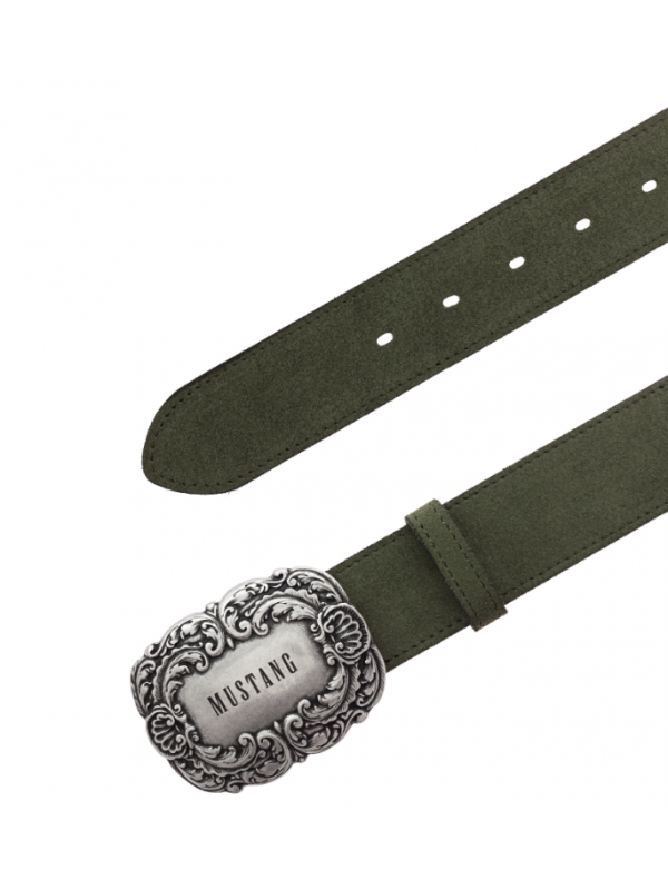 Dámský pásek v olivové barvě kožený (semiš)
