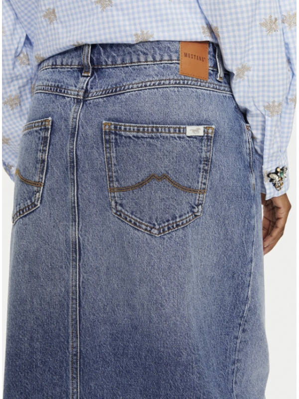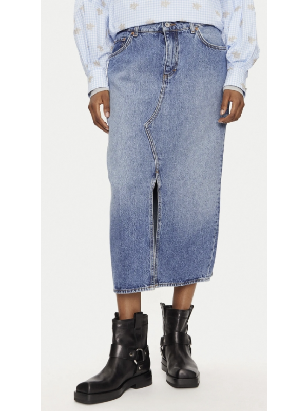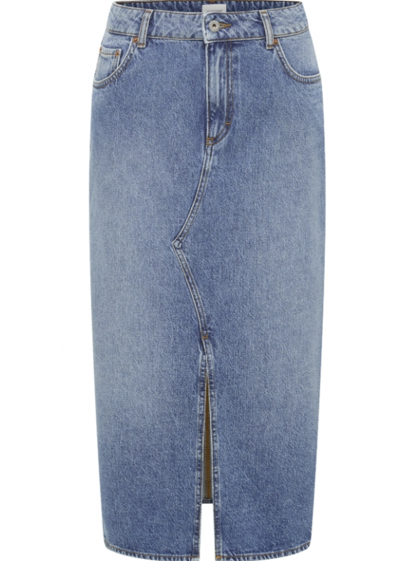 Džínová sukně s rozparkem vpředu, zapínání na zip