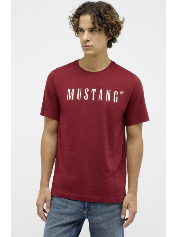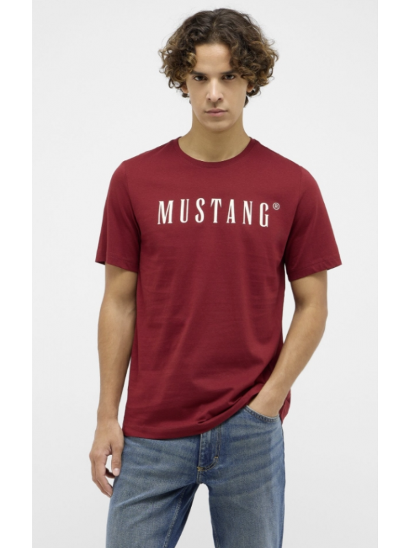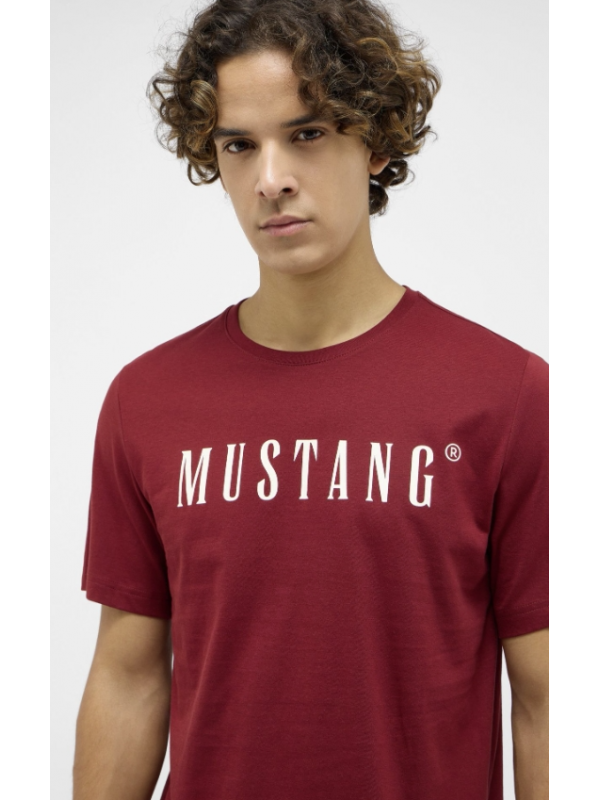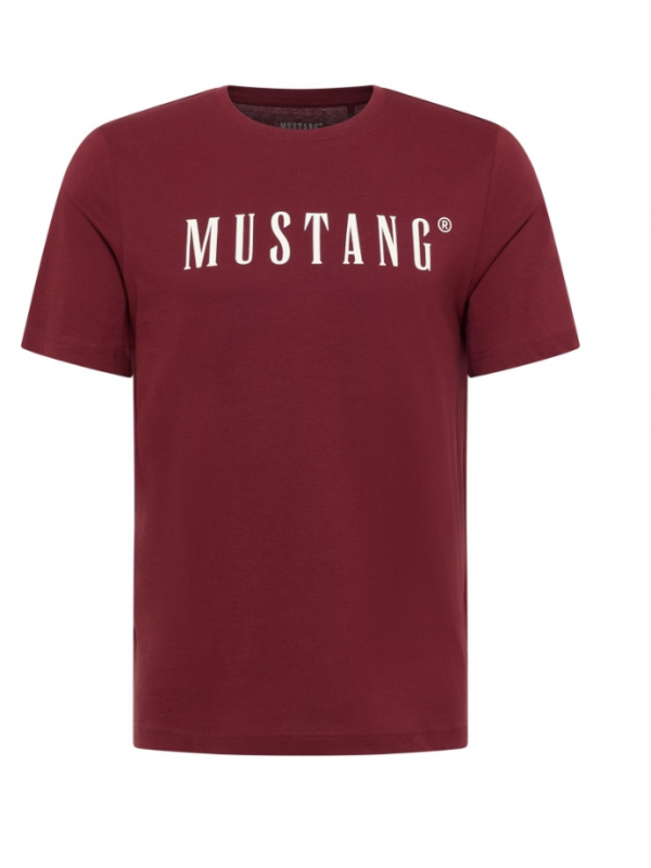Tmavě vínové tričko s logem MUSTANG v bílé barvě