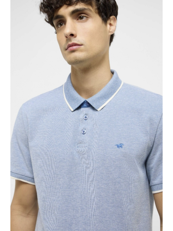 Pánské polo triko v modro/bílé barvě s malým vyšitým koníčkem na prsou