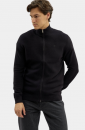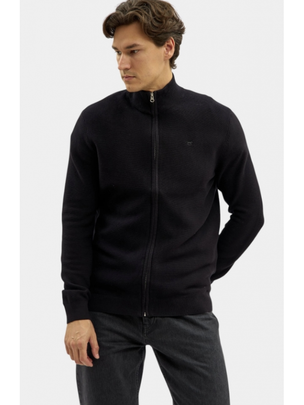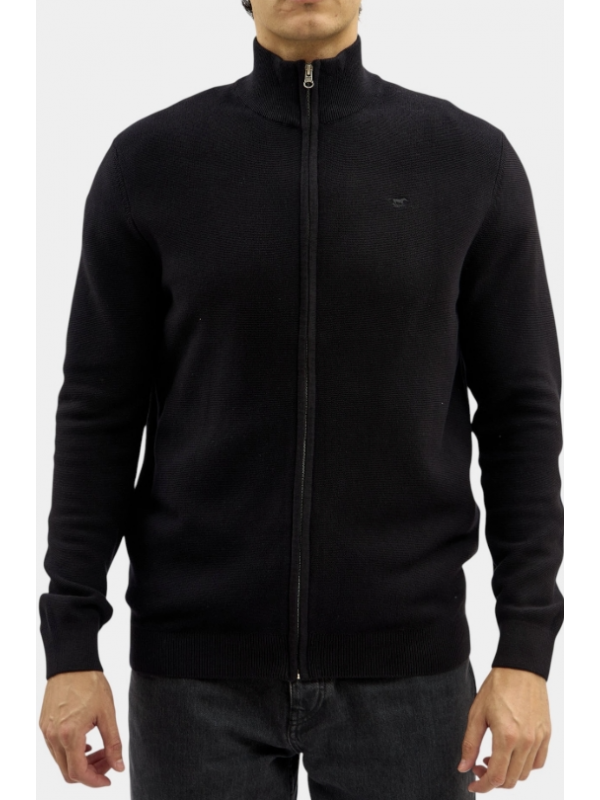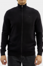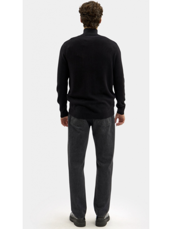 Lehký pánský svetr na zip v černé barvě, s malým vyšitým koníkem na prsou.